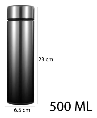 Termo Digital De Acero Inoxidable, Inteligente De 500 MlPantalla de temperatura inteligente: sensor de temperatura integrado de alta sensibilidad, solo tienes que poner el dedo en la tapa, a continuación, la pantalla LED muestra la temperatura dentro de la botella. Nunca es necesario probar la temperatura bebiendo un sorbo de agua, y evitar que la lengua se escalque con agua caliente. -Material premium: hecho de acero inoxidable 304 de grado alimenticio, que es antioxidante, resistente a la corrosión y nunca deja un sabor metálico. -Temperatura de bloqueo a largo plazo: puede mantener bebidas frías y calientes durante 24 horas, lo que es perfecto para invierno y verano. -Diseño de humanización: viene con filtro de té de acero inoxidable para separar la bolsa de té y el agua. Hace que el sabor del té sea mucho mejor. -Diseño sellado: 360° invertido sin fugas de agua,COLORES DISPONIBLES:-COMBINADO NEGRO CON PLATEADO
